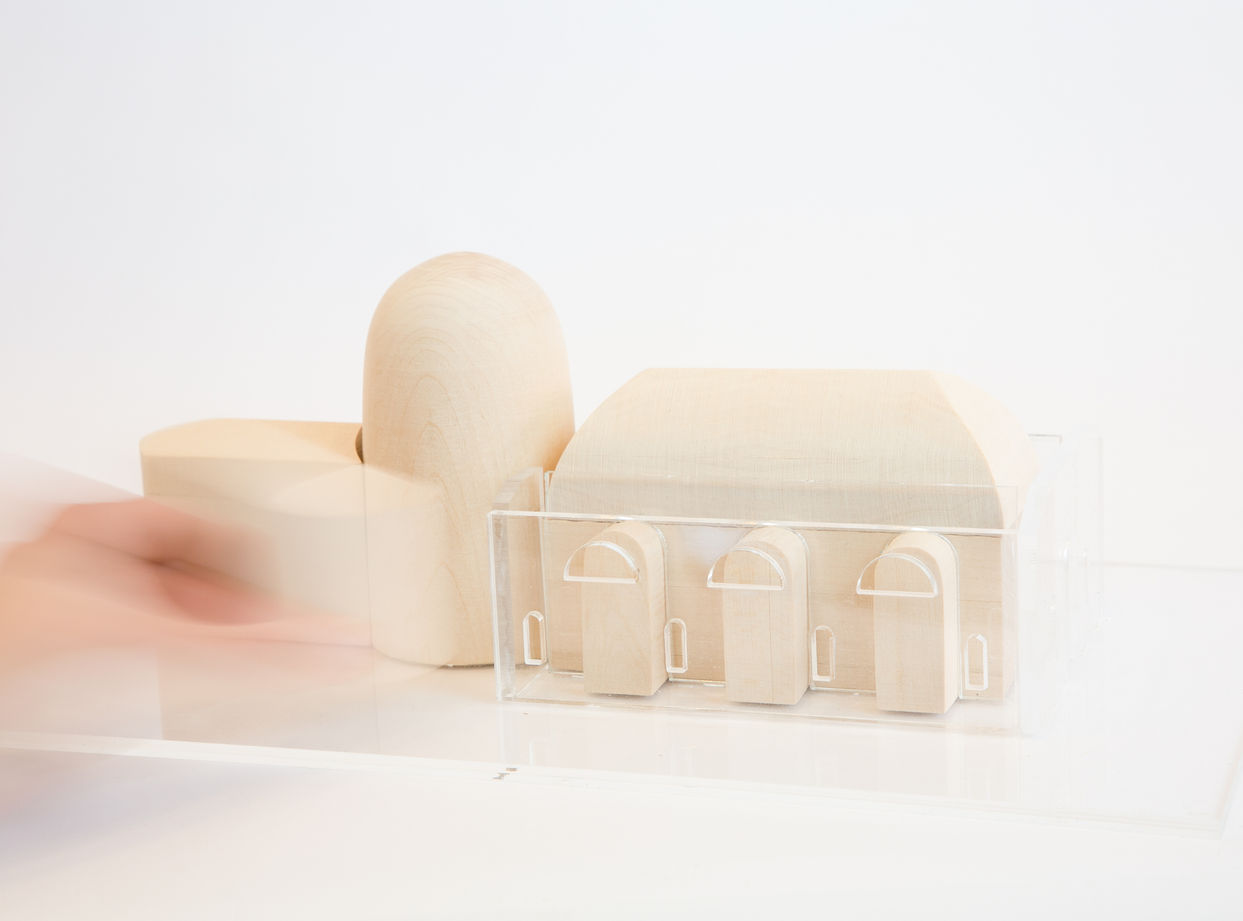 Hand carved wood, acrylic, PVA 3D print, Second Year Spring 2024 studio.